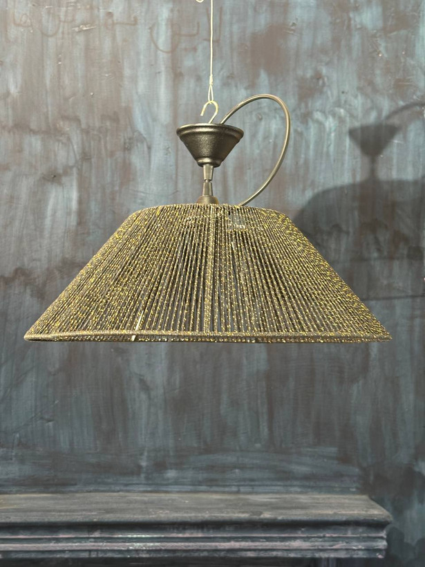 لوستر مخروطی قطع ۴۵سانت با نخ رافیا لمه دار میتونید در رنگ های دیگه هم میشه سفارش داد ولی باید در واتساپ پیام بدین و رنگهایی موجود براتون ارسال بشه .فریم بدون سر پیچ هستن .