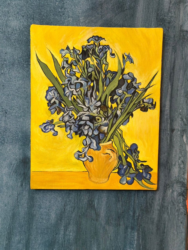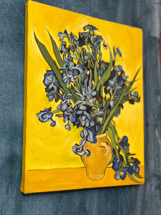 بازآفرینی نقاشی گلدان زنبقهای آبی اثر ونسان ونگوگ